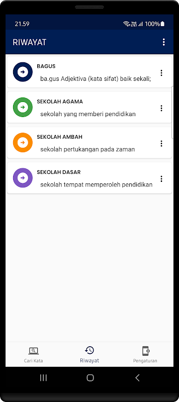 L'applicazione Big Indonesian Dictionary (KBBI) è il dizionario di parole KBBI ekalingual ufficiale in lingua indonesiana compilato dalla Language Development and Development Agency e pubblicato da Balai Pustaka. Questa applicazione del dizionario KBBI può essere utilizzata come riferimento principale per l'indonesiano standard e ti aiuta a trovare parole indonesiane con una raccolta di parole KBBI con un'ortografia buona e completa delle parole indonesiane KBBI.