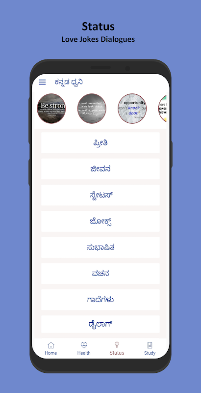 In the third part, the status can be found, which is divided into life, jokes, proverbs, riddles, and deeds. In it you will find the corresponding status and you can copy and share them.