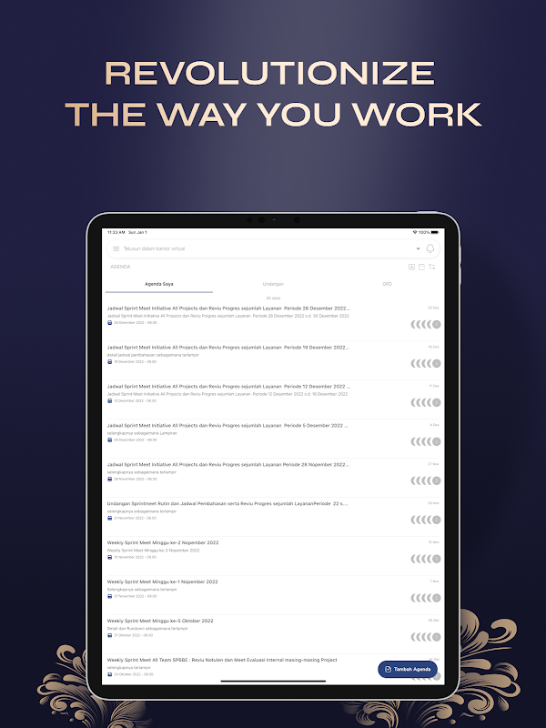 Sei stanco di spostarti tra pile di carta e infinite caselle di posta per rimanere organizzato e in cima alle tue attività? È giunto il momento di passare a un'applicazione di corrispondenza elettronica. Congratulazioni a tutti voi come dipendenti del governo provinciale di Bali. Virtual Office è pronto e aggiorna sempre le sue funzionalità per te.