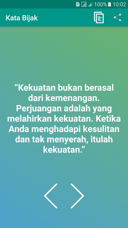 Aplikasi ini adalah aplikasi kata kata mutiara terbaik dengan bahasa indonesia dan inggris. Aplikasi kata kata mutiara ini memiliki lebih dari 10000 kata kata mutiara yang berkualitas tinggi. Kata kata lucu, kata kata sedih, kata kata sindiran, kata kata cinta, kata kata romantis dan banyak lagi. Kamu dapat menshare dan mencurahkan isi hatimu dengan kata kata yang ada dalam aplikasi ini untuk dipost di social media favorit kamu seperti facebook, twitter, whatsapp dan masih banyak lagi.