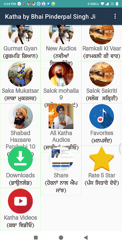 applicazione dispone di 'Katha Con Bhai Pinderpal Singh Ji':