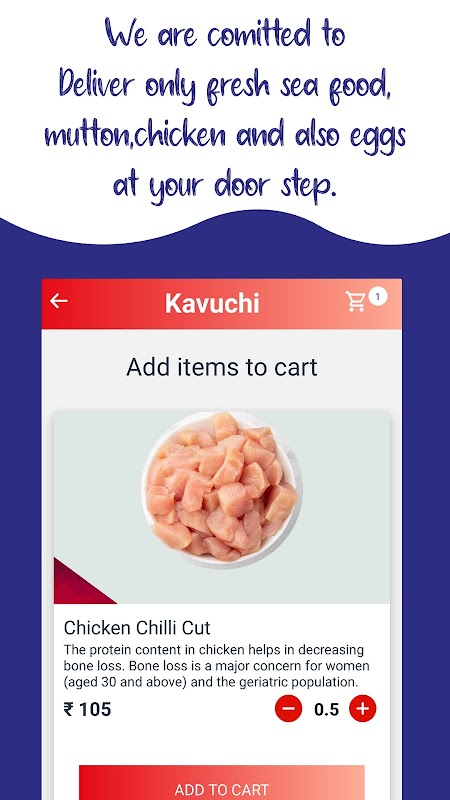 Kavuchi Is a First Online non-vegetarian Mart Initiates Its Operations In Salem. Kavuchi Ensure The High Quality Fresh Fish, Sea foods, Chicken, Mutton On Wheels Concept To Ease Your Life, At Your Door step!