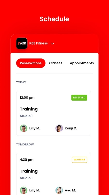 Prenotazioni di lezioni e gestione degli account per i membri di KBE Fitness