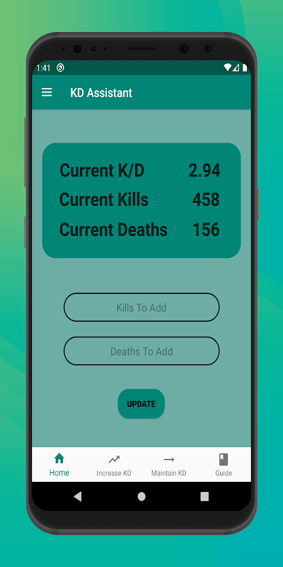 INCREASE KD SECTION- In this section, enter your desired KD and the app will calculate the number of enemies to defeat per match to get your desired KD.