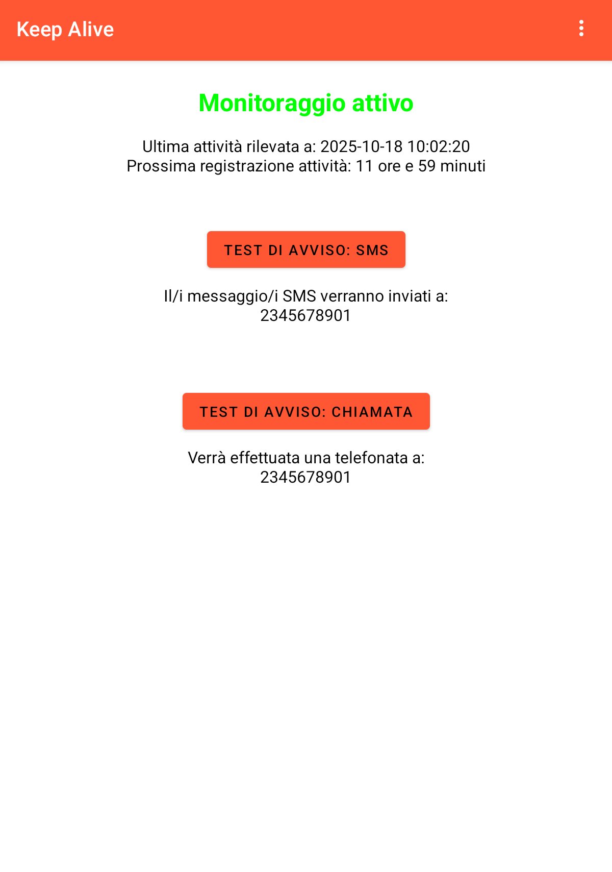 Keep Alive invia un messaggio personalizzato via SMS a una o più persone se non utilizzi il dispositivo per un determinato periodo di tempo. Pensata come misura di sicurezza per chi vive da solo, utile in caso di incidente o emergenza. Una volta configurata, non richiede ulteriori interazioni.
