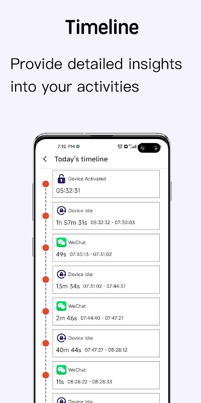 1. Track Daily Phone Usage Timeline: View detailed information on the exact times you use each app throughout the day.