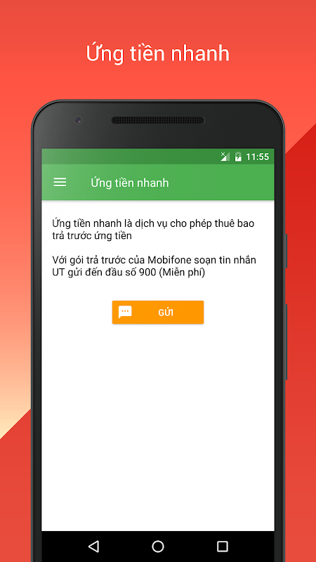 Ứng dụng giúp bạn soạn tin nhắn đăng ký dịch vụ ứng tiền nhanh với tổng đài khi tài khoản của bạn hết tiền