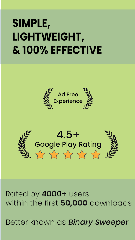 Essenziale, intuitivo e veloce — Binary Sweeper ti aiuta a recuperare spazio di archiviazione e a mantenere il tuo dispositivo ordinato.