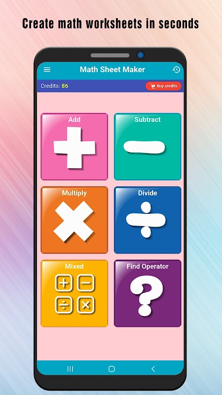 Math Sheet Maker aiuta genitori e insegnanti a creare facilmente fogli di lavoro di matematica stampabili per studenti delle elementari, direttamente dal tuo smartphone.