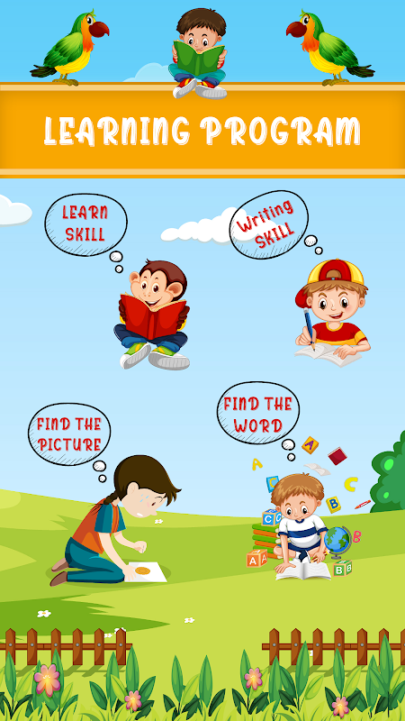 Imparare l'inglese attraverso i minigiochi è uno dei modi migliori per insegnare a tuo figlio a parlare inglese da solo. In questo gioco inglese per bambini, tuo figlio può imparare l'alfabeto inglese, i numeri, il mese inglese, i giorni della settimana, i nomi di frutta e verdura, i nomi dei piatti e della frutta secca, i nomi dei veicoli, degli uccelli e degli animali, i colori e le forme, il lavoro e l'occupazione, il nome di parti di computer, cancelleria scolastica, stagioni dell'anno e nomi di regia in inglese. I minigiochi offrivano sia elenchi che letture per imparare l'inglese, il che consente a tuo figlio di sentirsi a proprio agio con ogni abilità.