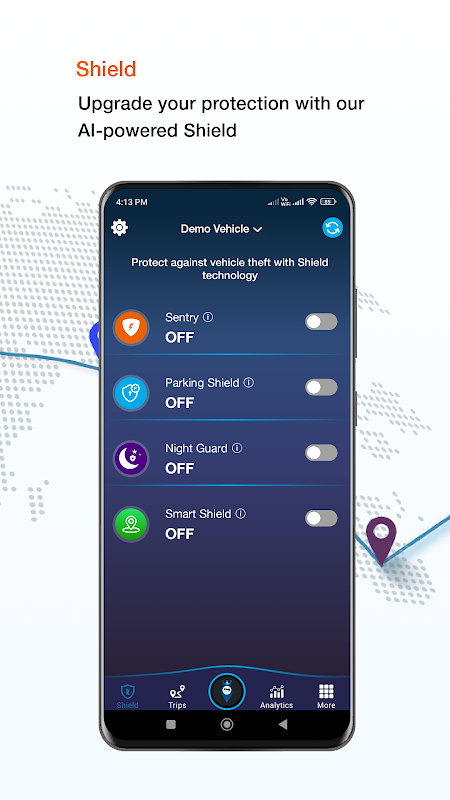 Parcheggio Shield: Quando abilitato, suonerà un allarme distintivo vostra applicazione ed eseguire il motore spento se ogni attività è registrata.