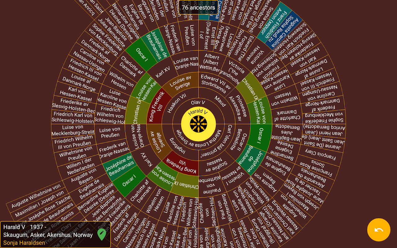 Kinsmap presenta il tuo albero genealogico in modi nuovi ed entusiasmanti. I grafici a ventaglio interattivi di ascendenza e discendenza forniscono nuove informazioni sulla storia della tua famiglia e le mappe rivelano le migrazioni dei tuoi parenti nel tempo. Importa il tuo file GEDCOM dal tuo programma di genealogia preferito e il tuo albero genealogico apparirà come difficilmente l'hai visto prima.