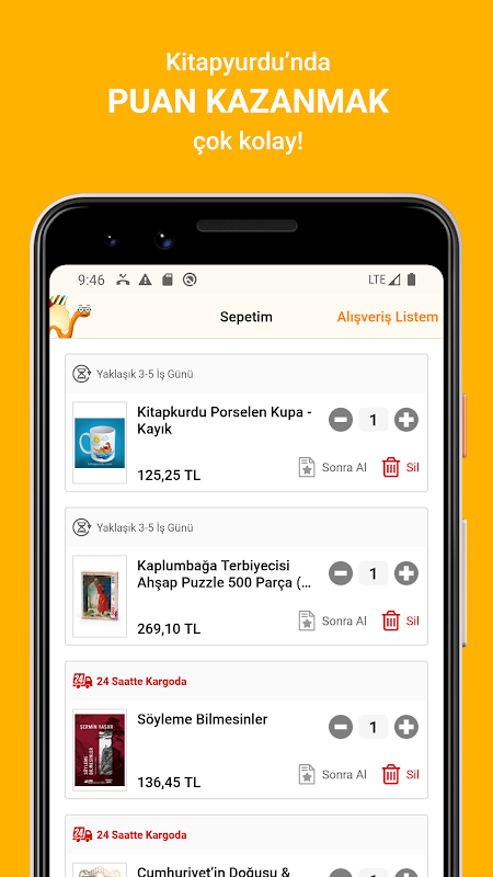 L'applicazione Kitapyurdu offre molto più che un semplice acquisto di libri. Ecco prodotti di cui puoi godere in famiglia, materiali didattici per studenti ed esperienze uniche per i topi di biblioteca. Scaricalo ora, inizia a esplorare e porta la tua passione per la lettura ai massimi livelli!