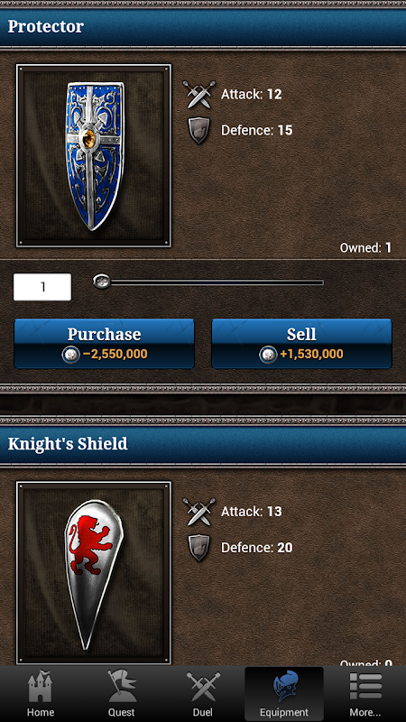 *Una vasta scelta di oltre 60 armi, scudi e armature