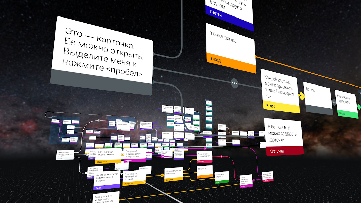 Questa applicazione è un compagno VR, progettato per scopi di analisi: è possibile evidenziare le carte e i loro collegamenti in mappe complesse, esporre multi-istanze di carte specifiche (in mappe concettuali singole o multiple). Inoltre puoi accedere al tuo spazio di lavoro a tutte le mappe concettuali contenenti una scheda specifica in due clic!