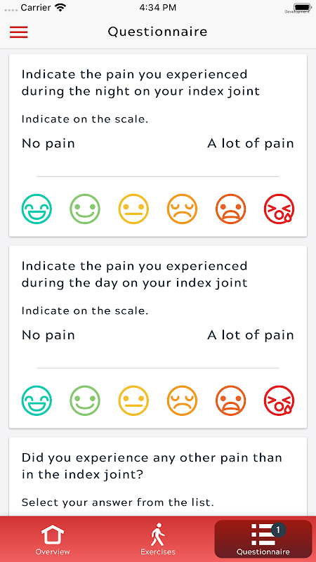 You will also have the possibility to receive an active therapy program, and advices from physical therapists on your progress. Your program is adjusted based on your evolution, your registered activities and your pain scores.