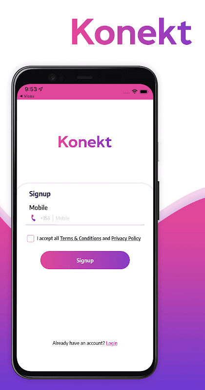 Konekt app progettata con la massima semplicità per navigare nell'app, facile download e facile accesso, che collega i cuori attraverso intenzioni pure.