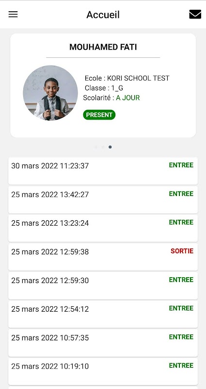 Kori School è un'applicazione per la gestione e la frequenza delle presenze degli studenti. Ogni volta che entrano nella scuola, viene effettuata una scansione da parte dei supervisori e i genitori vengono automaticamente avvisati della presenza del loro bambino nella scuola.