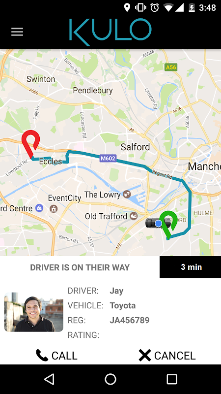 Track and Trace map via SMS, we'll confirm your driver their vehicle and contact details, our clever software shows you where your KULO is in real time, removing all anxiety so you have certainty as to when your car will arrive.