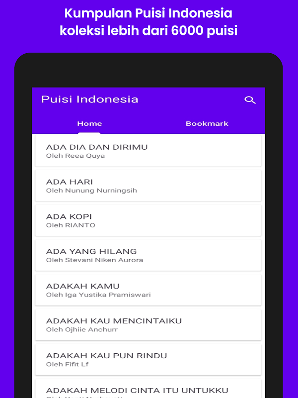 L'applicazione "Raccolta di poesie indonesiane" fornisce più di 6000 poesie che possono essere lette e salvate gratuitamente.
