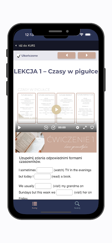 Guarda video, leggi lezioni di testo, riproduci audio e fai test. Tutto è a portata di clic e avvia l'applicazione!