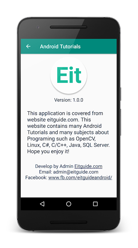 Android Tutorial is a applicationn about education. Android Tutorial covers basic and advanced concepts of android technology in Website eitguide.com.