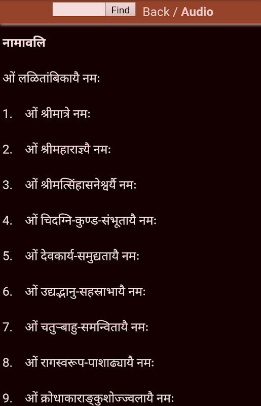 Leggere il Mantra di giorno o di notte modes.Included Stotram, Namavali, Trisati, Ashtotar e Phalasruthi. È incluso anche l'introduzione e la grandezza del canto del Mantra con completa Commentry e audio. Aggiunta storia di Lalita Devi
