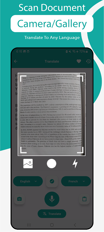 3) Input immagine: puoi inserire l'immagine dalla Fotocamera o dalla Galleria per estrarre il testo (attualmente supporta solo l'inglese) da quell'immagine per tradurlo nella lingua desiderata.