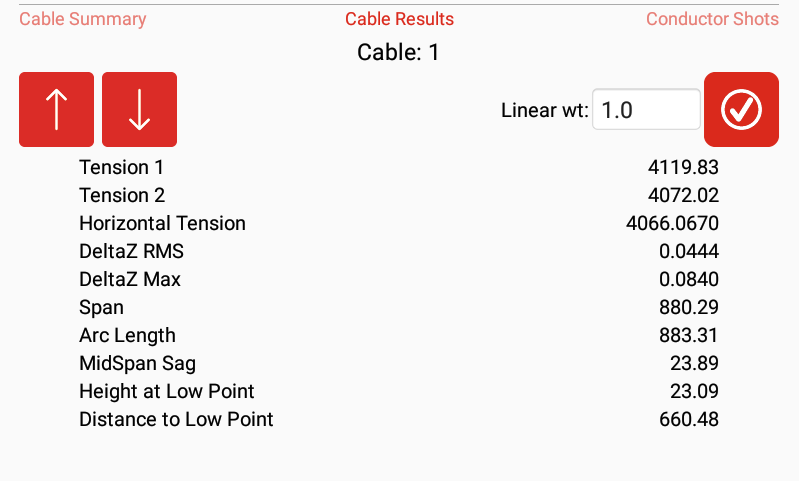 Vengono quindi eseguiti i calcoli per ottenere parametri quali campata, abbassamento e tensione per ciascuna campata del conduttore misurata.