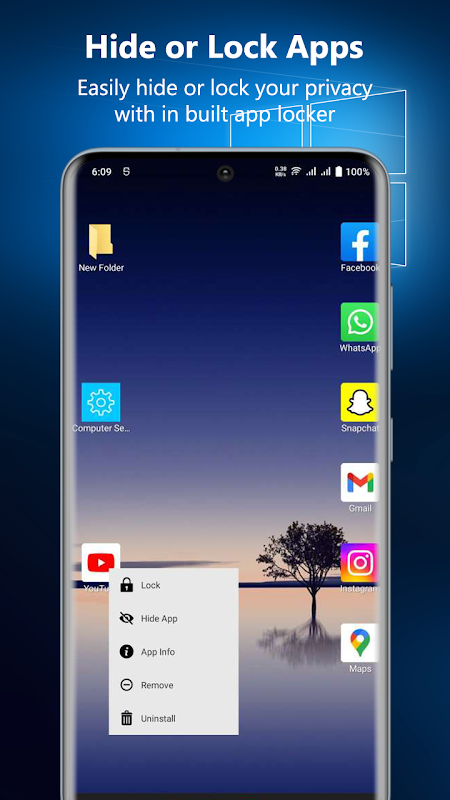 Rendi il tuo telefono Android simile all'interfaccia utente di Computer Metro proprio come il PC Windows 10 sul tuo Android. Questo programma di avvio ti darà esattamente la sensazione di un programma di avvio desktop per Windows 10 con personalizzazioni personalizzate del computer desktop