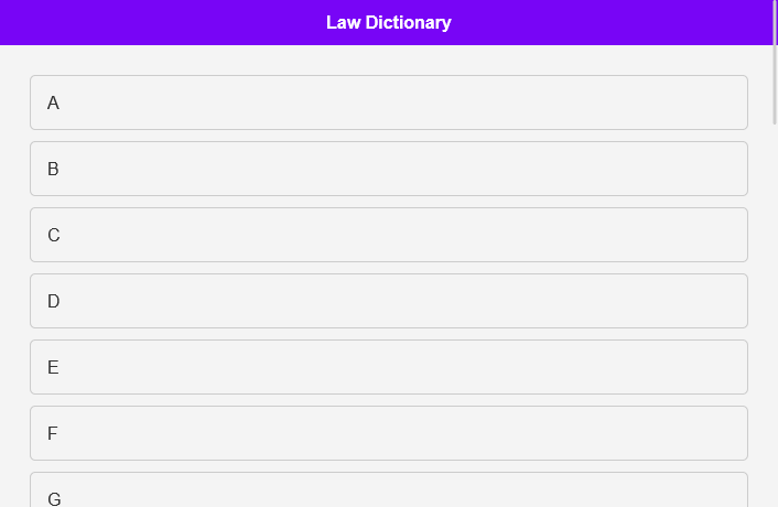 Funzione di ricerca di parole: la nostra potente funzione di ricerca ti consente di trovare rapidamente definizioni e spiegazioni di termini legali. Basta digitare la parola e ottenere l'accesso immediato al suo significato e utilizzo.