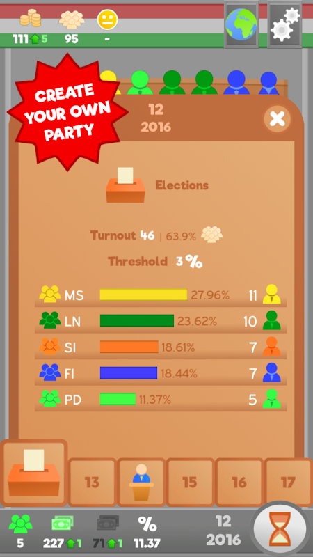◉ Gestisci l'esperienza, la popolarità e la lealtà dei tuoi parlamentari