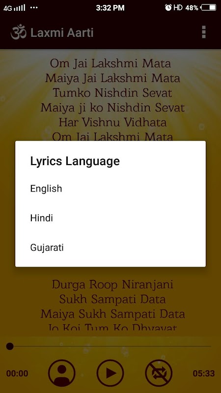- No internet requirement to listen Om Jai Laxmi Mata Aarti.