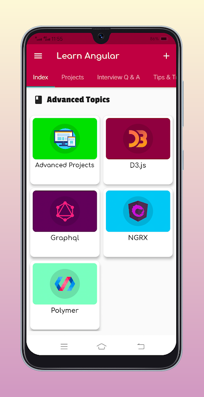 Questa applicazione ti introduce a vari argomenti di Angular 8 e dei suoi predecessori con vari esempi di codice, progetti in tempo reale, domande di intervista, scenari in tempo reale, ecc.