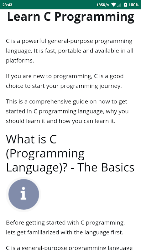 A complete tutorial for C programming language easily from this app