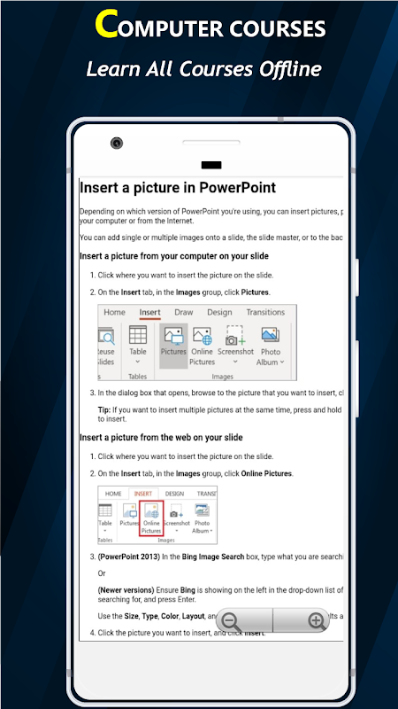 Impara corsi di computer L'applicazione offline è facile da usare per tutti i tipi di utenti che possono facilmente imparare il corso desiderato su basi quotidiane. Questa app è completamente offline e tutti i nuovi arrivati che sono interessati a imparare il computer di base installano questa app sul proprio cellulare. Attraverso questa applicazione apprendi il Computer e le basi fondamentali dell'hardware del computer, del software.