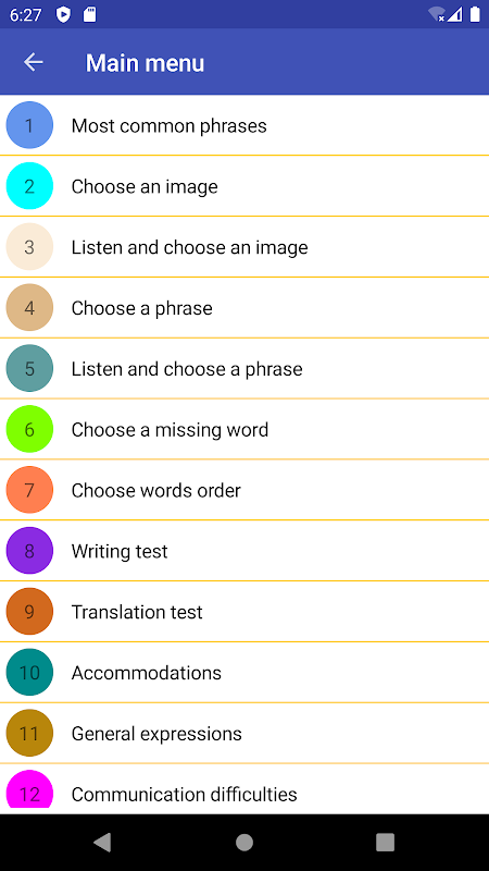 Questa app ti aiuterà a imparare a leggere, scrivere e pronunciare parole e frasi. È un gioco educativo divertente e facile da usare che include migliaia di parole e frasi che ti forniscono conoscenze in situazioni del mondo reale. L'app è suddivisa in 100 argomenti che riguardano la vita quotidiana o le situazioni di viaggio.