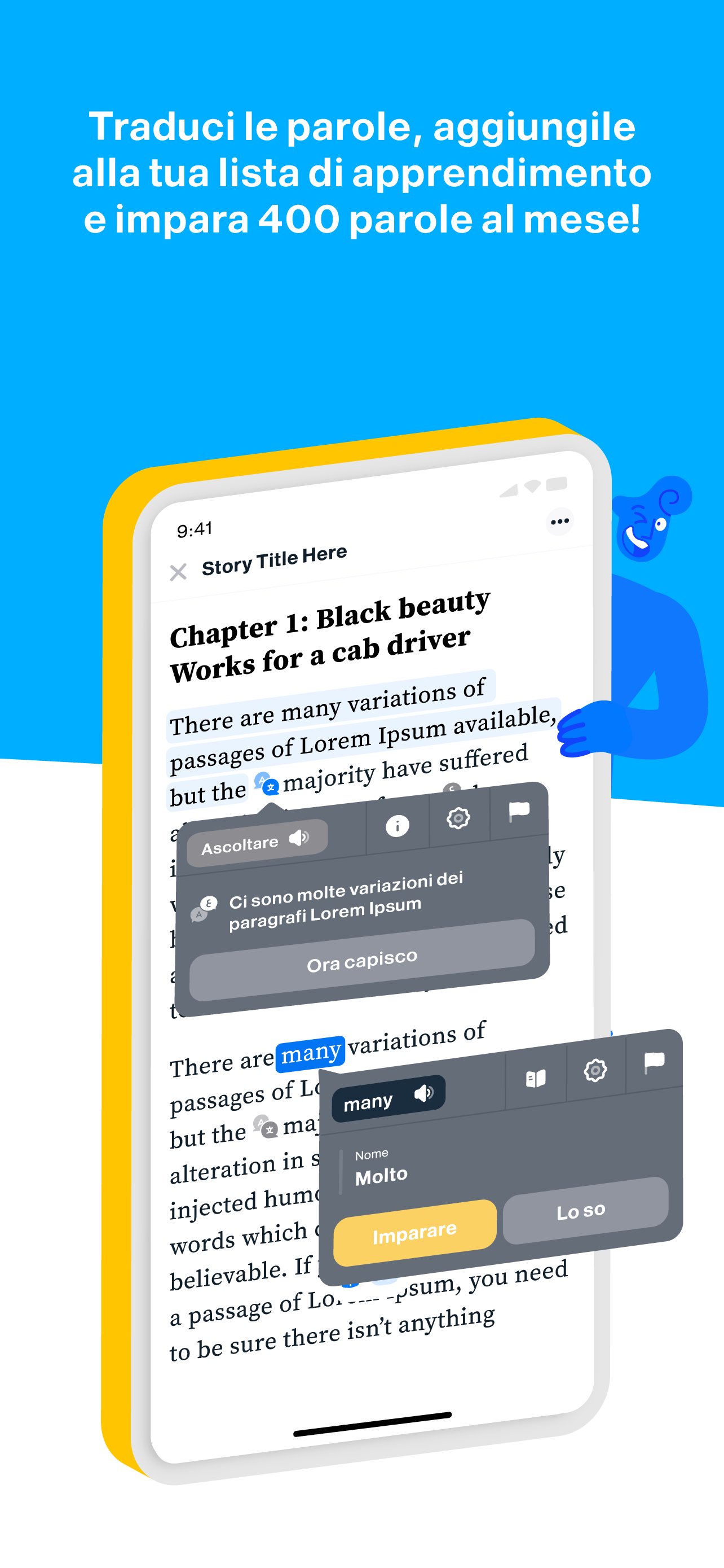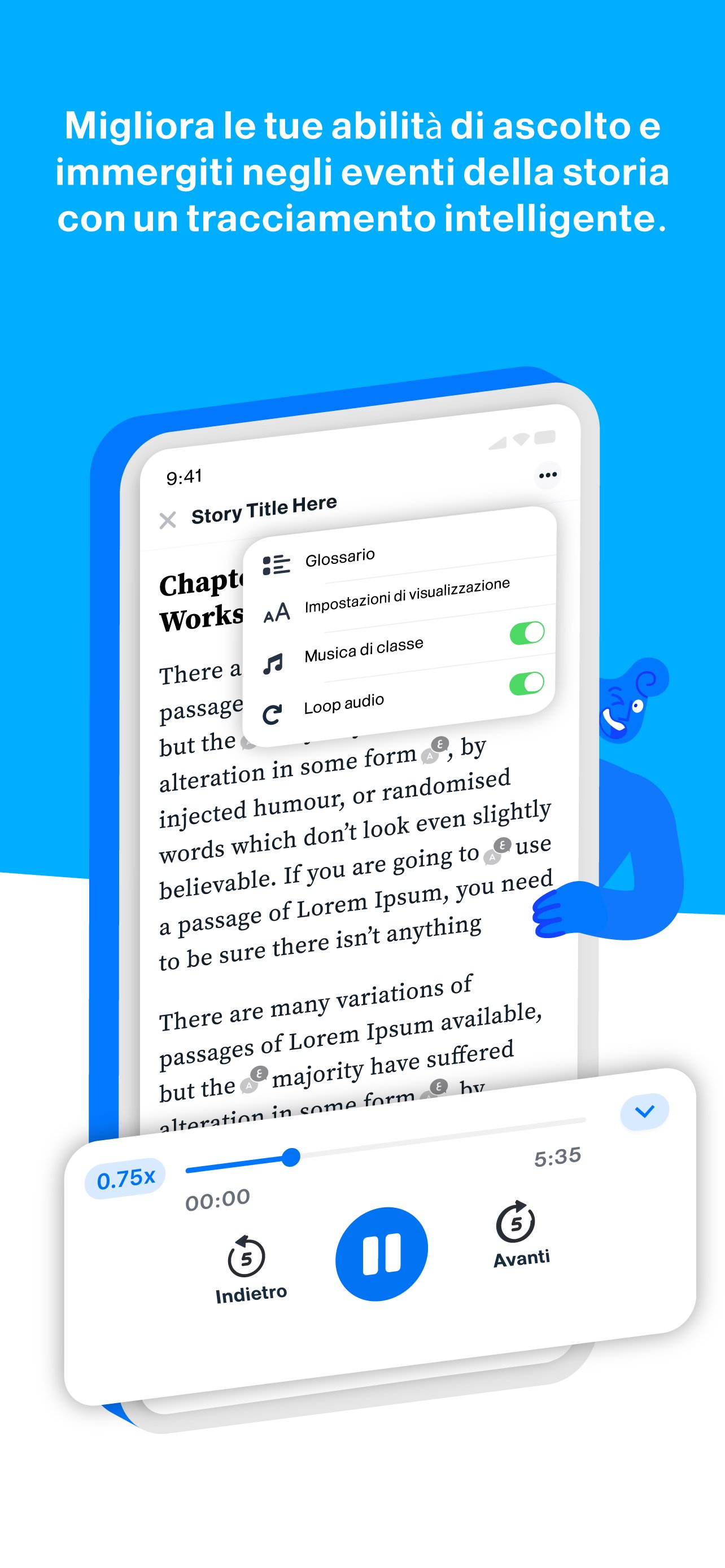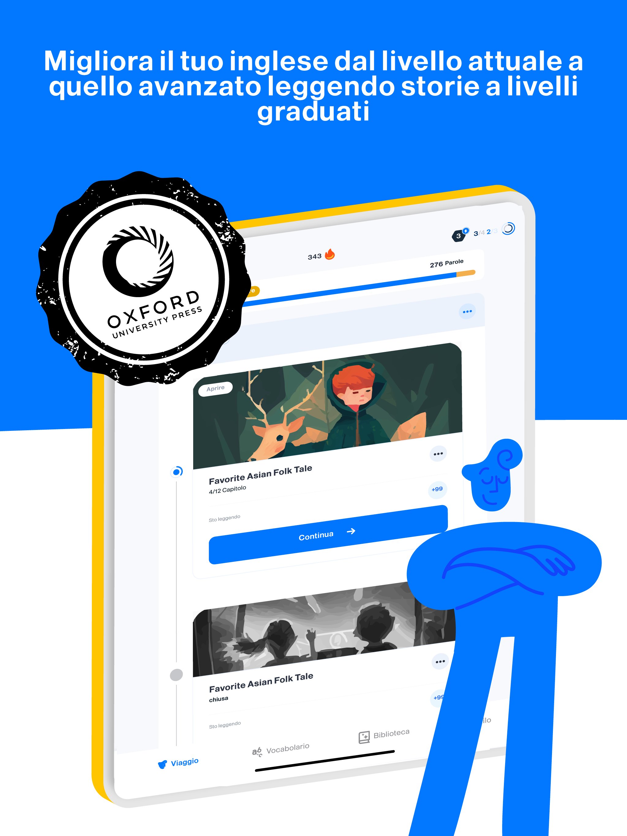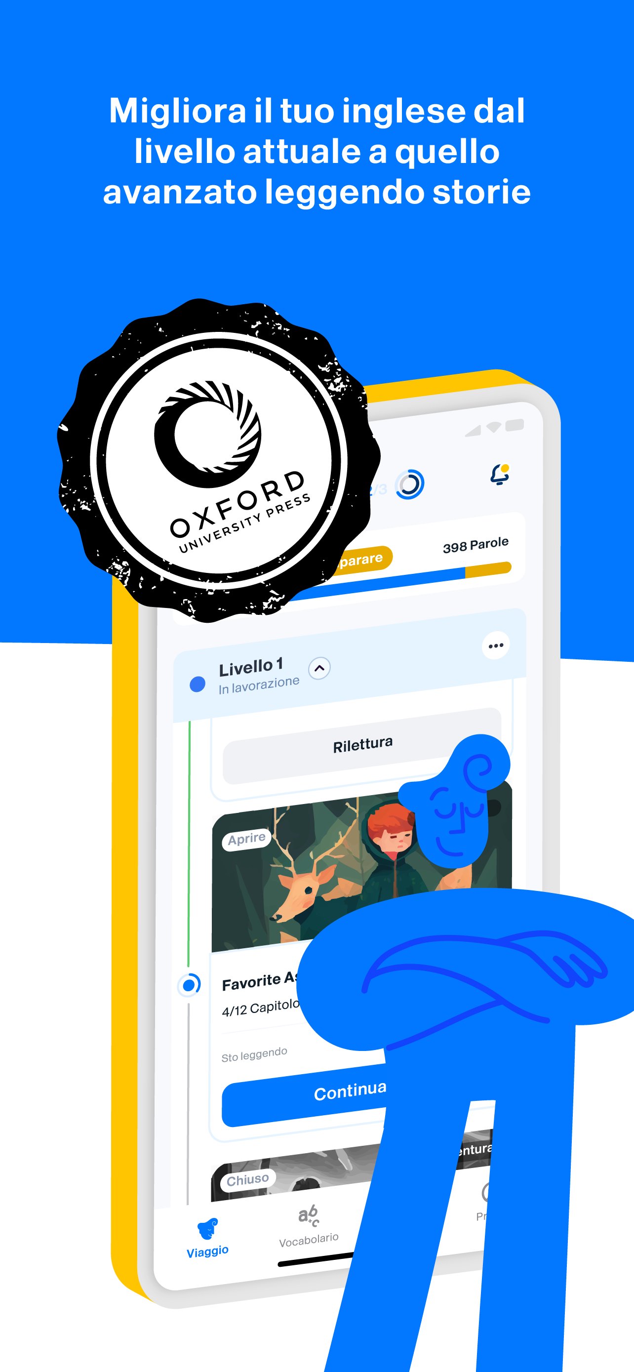 La migliore app al mondo per migliorare il tuo inglese attraverso storie avvincenti. Segui i tuoi progressi dal livello base a quello professionale mentre ti immergi in racconti coinvolgenti e migliori i contenuti Oxford. Acquisisci oltre 400 parole al mese affinando il vocabolario e la grammatica tramite conversazione, lettura e ascolto. Ora insegnare l’inglese è più semplice e senza limiti!