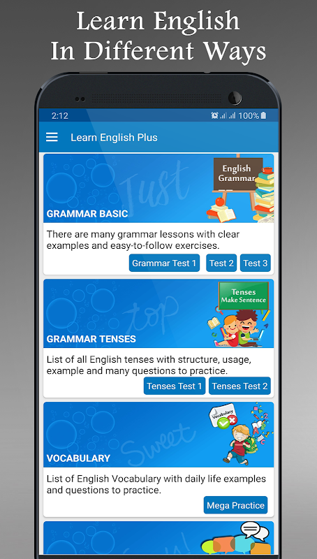 L'app Learn English ti offre un modo semplice per imparare, leggere, scrivere e parlare inglese.