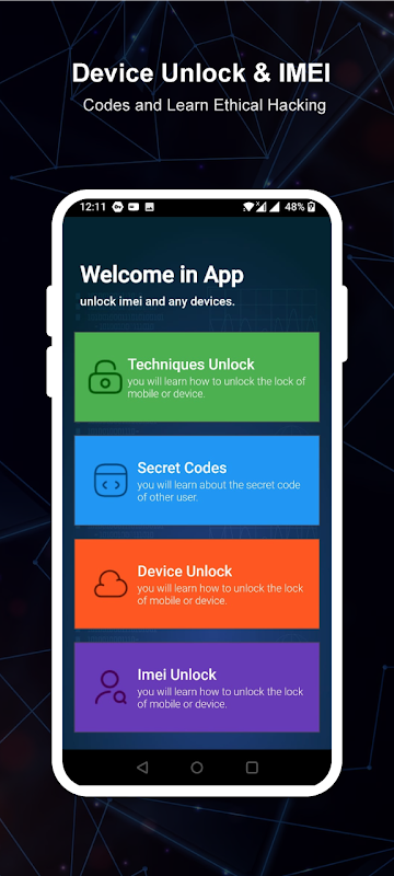 Benvenuto nella mia app IMEI Unlock - Ethical Hacking Androd, l'app definitiva progettata per aiutarti a sbloccare il tuo dispositivo mobile con facilità ed efficienza.