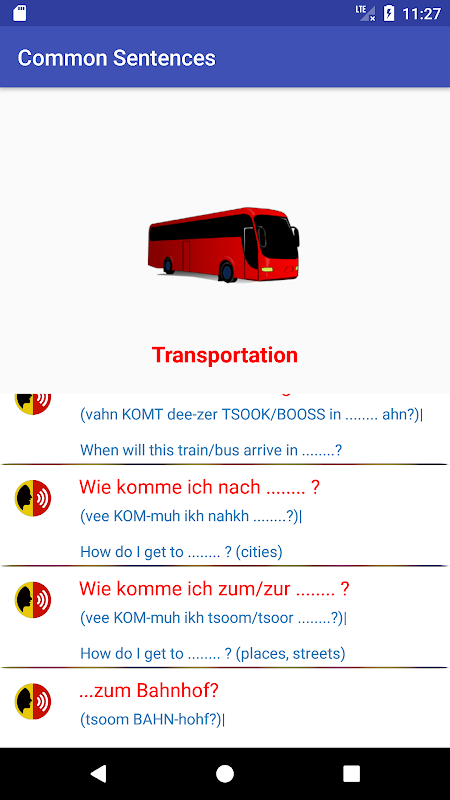 This app is distinct from different learning approaches and traditional apps which may be learn german language offline, learning German language, german grammar app, speak german language, learn speaking German, german grammar in use and speaking German language app because after in-depth analysis and keeping in view of essential metrics for learning any language have been entertained, for example in greetings, help seeking situation, Driving, Transportation, conversation with authority, shopping, direction guidelines; all are demonstrated in this app which local as well as foreigner person may communicate them.