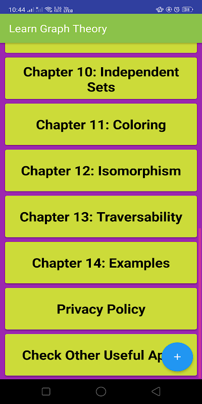 L'app è un manuale gratuito completo di Teoria dei grafi che tratta argomenti importanti, note, materiali e notizie sul corso. Scarica l'App come materiale di riferimento e libro digitale per Ingegneria informatica, IT, programmi di ingegneria del software e Matematica e Corsi di teoria della teoria combinatoria.