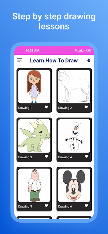 Scopri il potere della creatività con "Impara a disegnare", l'applicazione di disegno indispensabile sul Play Store! Ricca di una serie di straordinarie funzionalità, questa app è progettata per aiutarti a padroneggiare l'arte del disegno fornendo al contempo un'esperienza divertente e interattiva. Con tutorial facili da seguire, istruzioni dettagliate e un'ampia gamma di strumenti di disegno, rimarrai stupito da ciò che puoi creare!