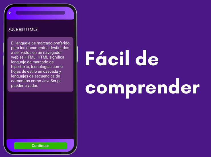 Nella nostra app potrai imparare l'HTML in modo facile e accessibile. Offriamo lezioni interattive in spagnolo che ti guideranno nel processo di apprendimento, dalle basi a quelle più avanzate.