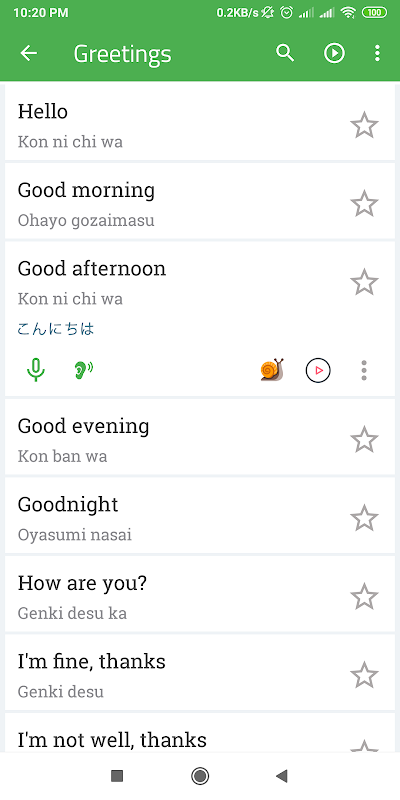 The “Learn Japanese” app has many useful Japanese phrases and words (e.g., “Thank you!”, “How much?” or “A table for two, please!”). When you tap a phrase, the app speaks it aloud. There is no guessing as to how to pronounce the words. And if the app is talking too quickly for you, simply tap the snail icon to hear the words more slowly. And if the app is talking too quickly for you, simply tap the turtle icon to hear it more slowly. Listen to pronunciation recorded by native Japanese speaker and then record and play back your own voice to practice your Japanese speaking skills!