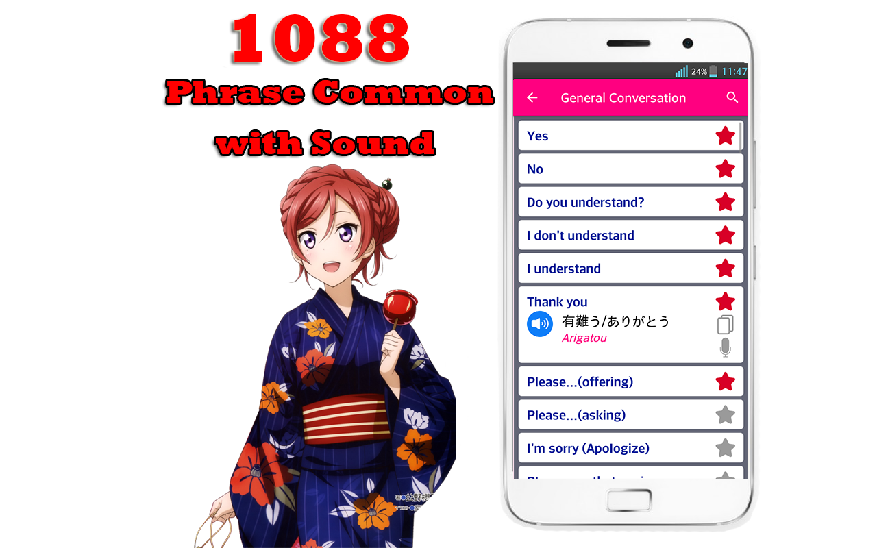 Impara il giapponese offline ha 1388 frasi comuni in giapponese con suoni