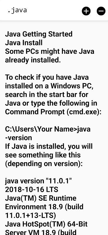 This app is a tutorial for learning Java or remembering the language after the time has passed when you are not using it.
