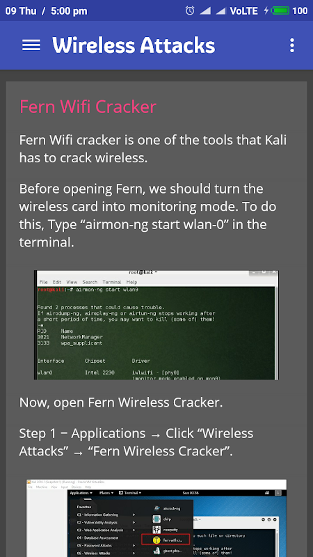 This application is also made in a manner to help out all the students who wish to study Kali Linux on a go with a pocket sized Kali Linux book in your smart phone.