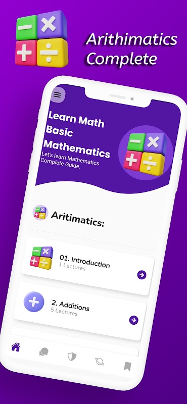 Per coprire il curriculum completo per la scuola primaria e superiore, l'app include anche divisibilità, numeri negativi, equazioni, disuguaglianze, geometria, potenze ed esponenti, teoria degli insiemi e funzioni.