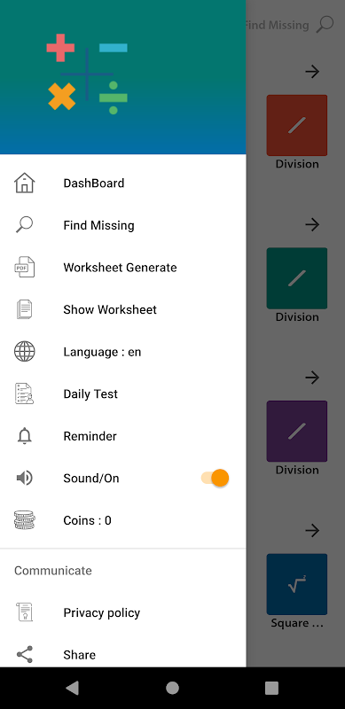 Play, Learn, Quiz, Practice and Test. Math games can be Educational Learning for kids or brain training app for Adults. Basic and simple Math Game of addition, subtraction, multiplication and division with colorful worksheets. Each set of worksheet shows a score after completion.